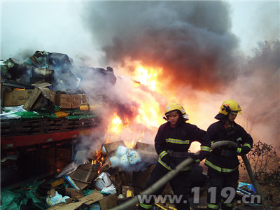 大隊(duì)官兵到達(dá)現(xiàn)場(chǎng)后發(fā)現(xiàn),一輛全長(zhǎng)二十米的貨車正濃煙滾滾,車頭和車底燃起熊熊大火,車的前半部分已經(jīng)燒的是面目全非,如果不及時(shí)阻止火勢(shì)蔓延,后果不堪設(shè)想。指揮員馬上下令,單干線出兩支槍,撲滅大火的同時(shí)包圍車體,不斷給車廂噴淋降溫,尤其防止車上火勢(shì)蔓延,危及官兵自身安全。