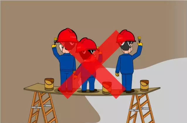 7、使用的木凳、金屬支架時(shí)應(yīng)搭設(shè)穩(wěn)固,腳手板跨度不得大于2m,在同一跨度內(nèi)施工的人員不得超過(guò)兩人。